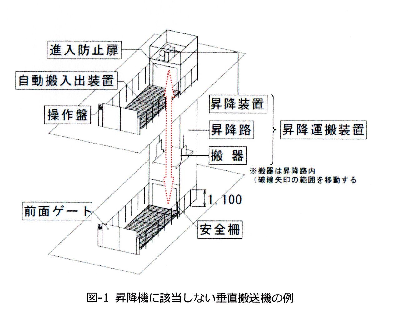 なお(1)~(3)の要件を満たす搬送設備であっても、クレーン等安全規則に定めるエレベーター又は簡易リフトに該当する場合があるため、同規則の基準に適合する必要がある。所轄労働基準監督署に確認すること。(法第34条第1項)